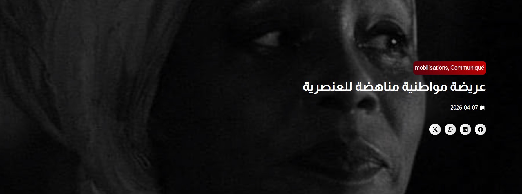 - ندعو التونسيّين والتونسيّات إلى النزول إلى الشارع في مسيرة احتجاجية وتضامنيّة، يوم السبت 11 أفريل 2026، على الساعة الرابعة مساءً، انطلاقًا من أمام مقرّ النقابة الوطنية للصحفيين التونسيّين في اتجاه شارع الحبيب بورقيبة. وذلك للتعبير عن رفضنا للحملات والخطابات والسياسات والمحاكمات العنصريّة، وتمسّكنا بالقيم الإنسانيّة التي قامت عليها ثورة الحرية والكرامة